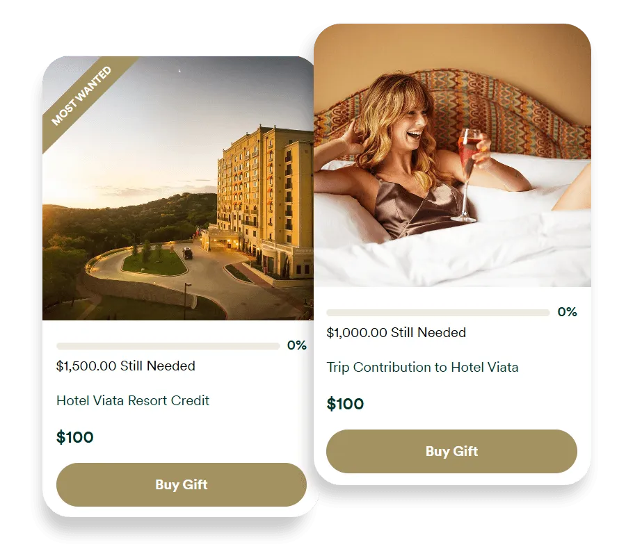 Choose from one of our customizable event websites, invitations and registries. Select real gifts and ideas from Hotel Viata to make your celebration wishes come true.