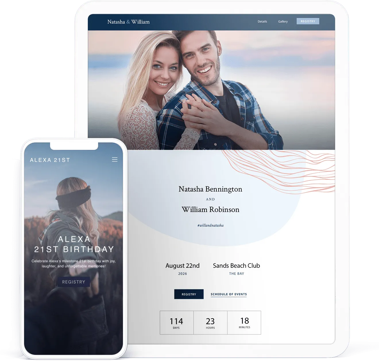 Design and personalize a customizable event website that guests can easily access for event details. Instead of juggling questions and messages about your upcoming event, simply direct invitees to the website for answers to any questions or concerns they may have.